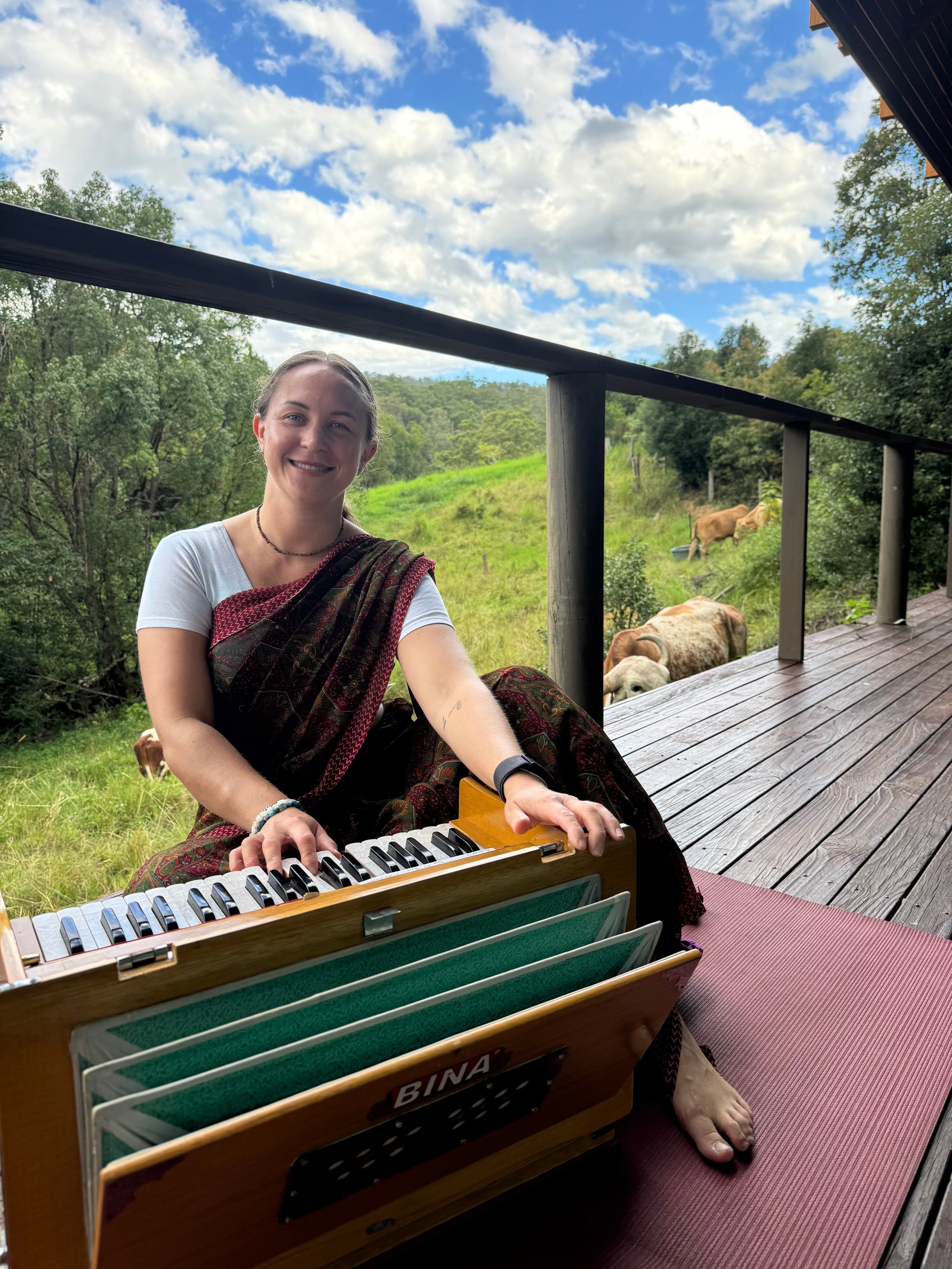 I lead kirtan and teach harmonium through classical foundations, and am developing nature-based stays rooted in simplicity and grounded living.